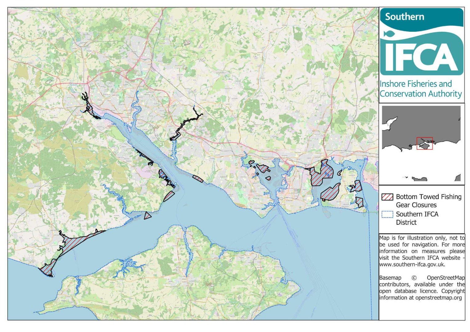The protected marine habitats and those outside designated areas are instrumental in providing food and livelihoods to so many in the area. It is Southern IFCA’s duty to manage fishing activities within the MPAs in its District, and in order to ensure they remain healthy and diverse, trawling, dredging and hand gathering have been prohibited by Southern IFCA in many specific areas around the Hampshire coast to protect particularly vulnerable habitats such as seagrass beds and saltmarsh. Over the past XX years Southern IFCA has prohibited bottom towed fishing gear activities over a total of 27.8 square kilometres of habitats around the Hampshire coastline.